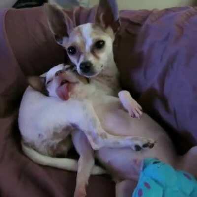 Keeping a friend warm.