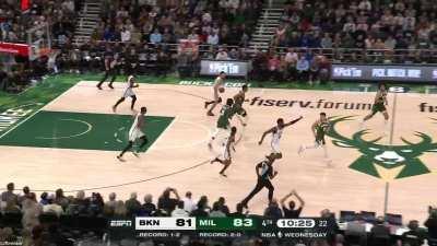 [Highlight] Ben finds himself in the paint with the ball yet doesn't look to shoot as Kyrie yells at him and fan screams 'Shoot it Ben'