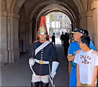 Dad making sure his kid keeps a safe distance from the guard