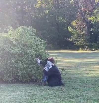 Shelter pupper walked up to a reporter in the middle of his story and wouldn’t stop hugging him. The reporter adopted him.