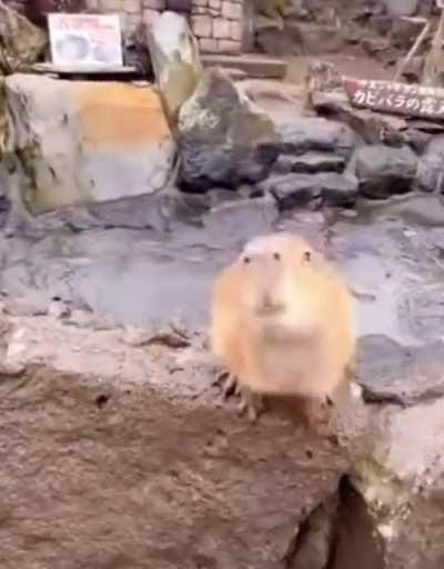 The lesser capybara (Hydrochoerus isthmius), found in Panama, Colombia and Venezuela, is considered distinct from its larger relative, the greater capybara (Hydrochoerus hydrochaeris) which inhabits more southerly areas. Here is a female lesser capybara n