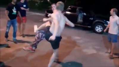 2 Eshays follow MMA fighter up a street - Headkick and Punches KO